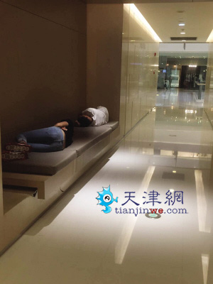 持续高温天气,开放了空调的商场成为一些市民的避暑胜地。昨天11点,记者来到和平路一家商场。正值工作日,商场内的顾客不是很多,记者发现,在二楼的卫生间附近有一排长条的休息座椅,两名男子正头对头地呼呼大睡,原本可以供五六个人休息的座椅,已经被两人霸占。此外,记者在三楼的休息座椅上也看到正在睡觉的市民。几名路过想要歇歇脚的顾客,见此情景只能无奈离开。