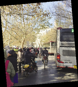 昨日上午9:00,记者来到中心公园,在环形小路上,相亲市场已经是一派热闹景象,现场人群中大多是中老年人,他们手里拿的,胸前挂的,摆在自行车上的各式资料,随时与身边的人互通“信息”,七八米宽的路面已经水泄不通。记者顺着中心公园的环形路走一圈发现,这里共有12条公交线路,都要途经公园的环形路进出站。热闹的人群中,不时有缓速慢行的公交车经过。“嘀……”一阵公交车的鸣笛声,吸引了不少人抬头观望。记者看到,路中间几名中年女子聊得兴起,完全没有意识到身后不足一米的位置一辆公交车开来,即便是司机的汽车喇叭声也没能引起她们注意。而这并不是个例,记者粗略估计,约500米的环路,公交车一路躲闪走走停停需要20多分钟。
